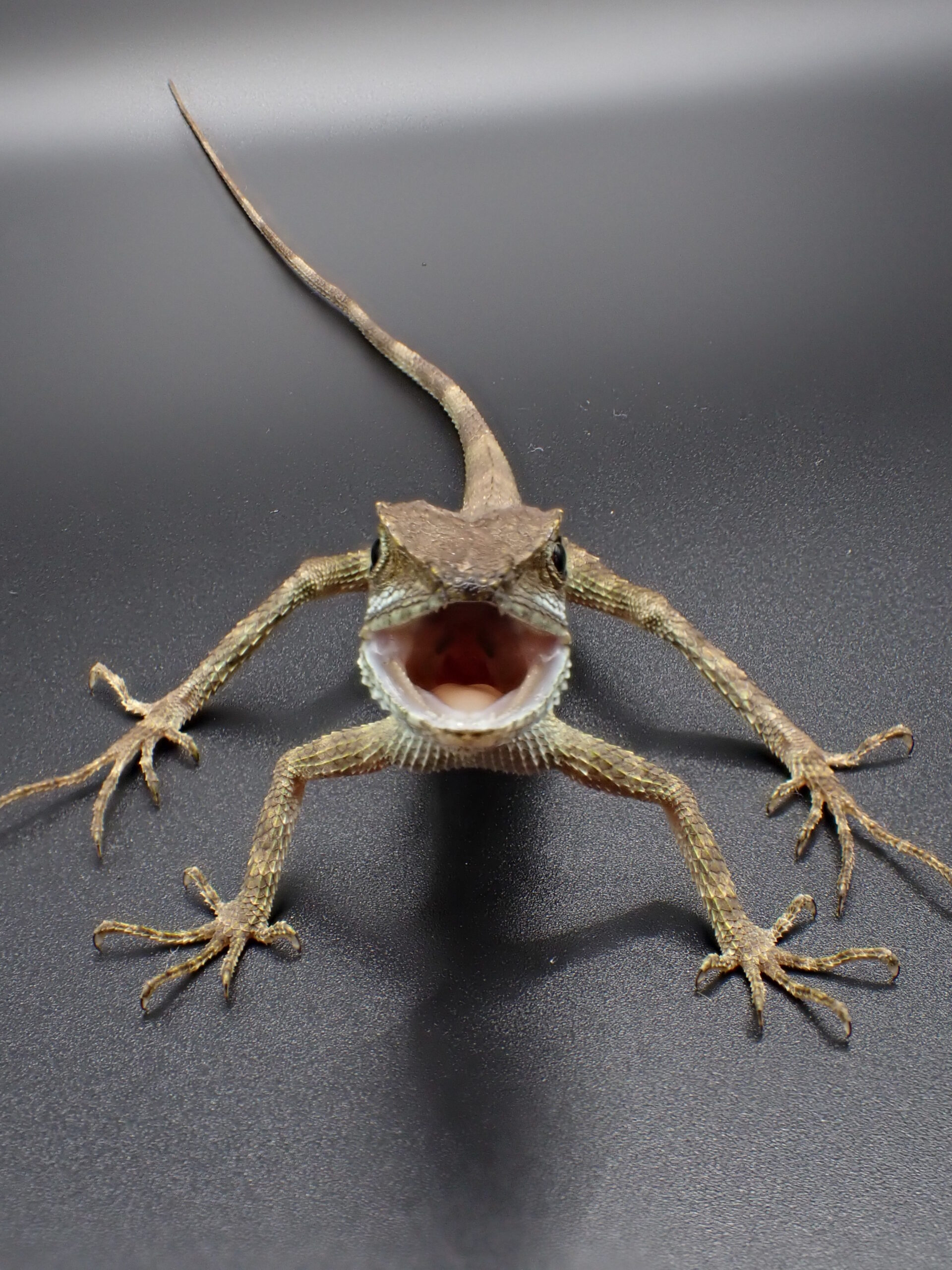 コオロギ、デュビア、シロアリ、ワラジムシ、バッタなんでもよく食べる。体が大きいためイエコの成体を食べてくれる。
