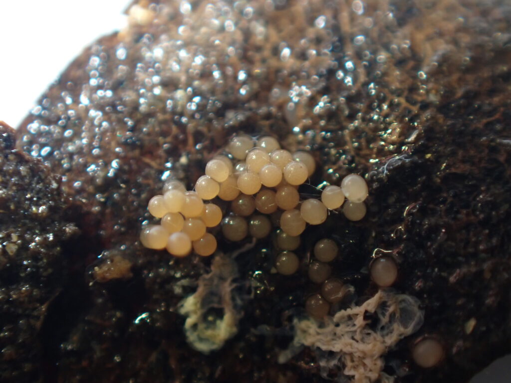 40個くらいあるように見える。多いときは70近く産むらしい。20℃~23℃くらいで管理。気温が低いほうが産卵数が多くなると聞いたことがある。