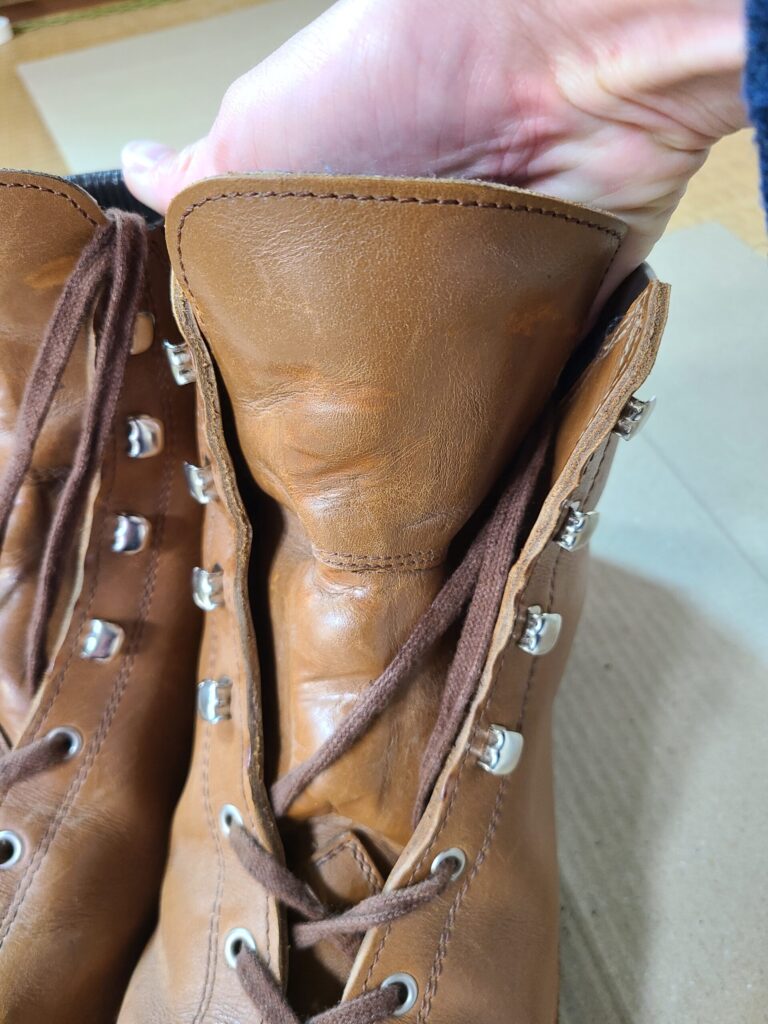 森を歩いた後なのでコバの部分が汚れている。泥汚れは早めに取り除いたほうがいいそうだ。