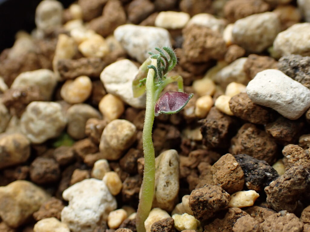 モンソニア ペ二クリナム#2 植物 2026.04.022026.04.07 ペ二クリナムを播種して39日がたったので記録 現在、4株が生長中 中でもこの3株は順調 この株はかなり怪しい 播種してからは常に腰水、サーキュレーターあり、21000Luxで管理。腰水はトレーに水がなくなったら追加